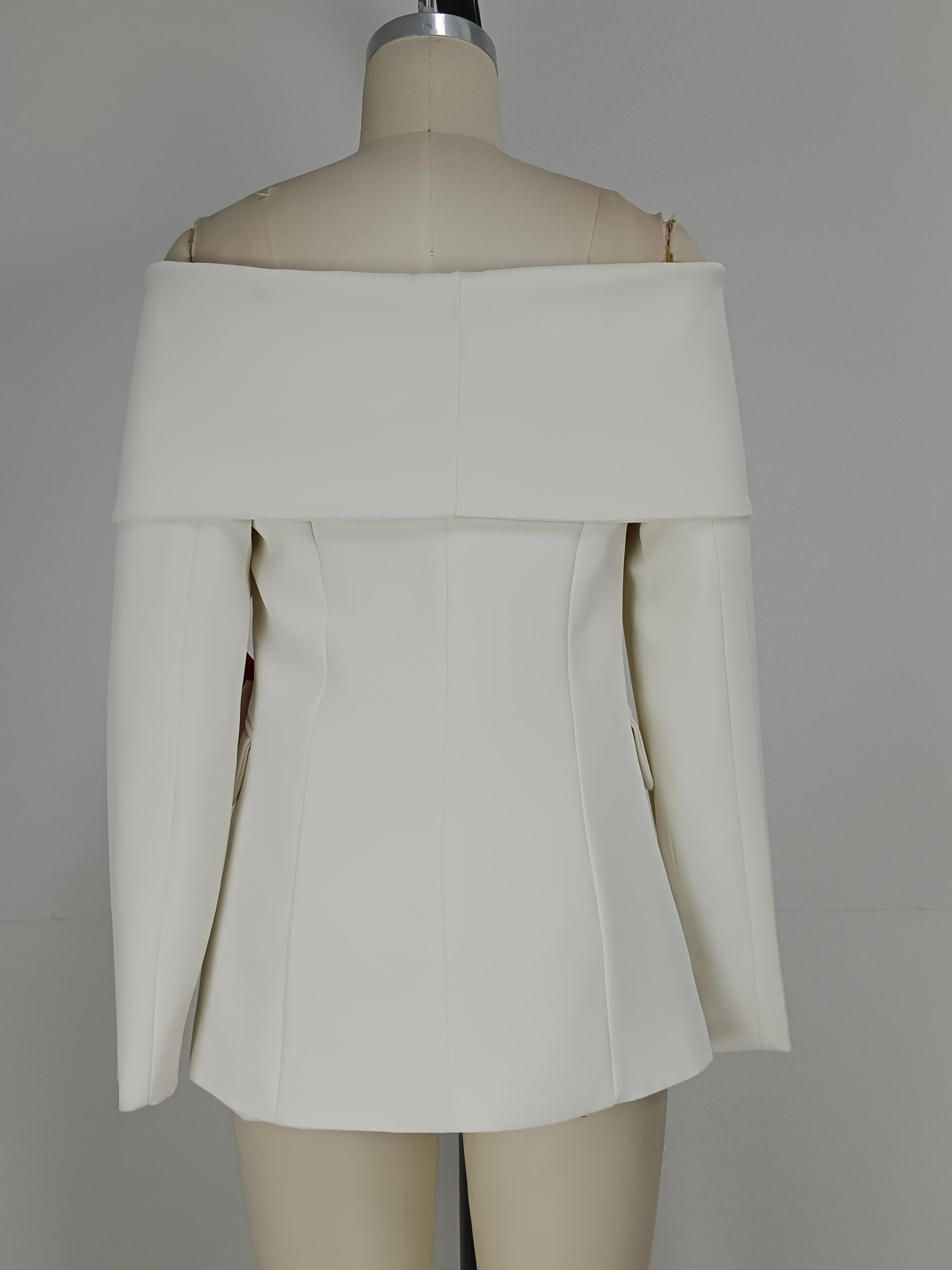 ●Design Feature: off shoulder apricot colored suit jacket