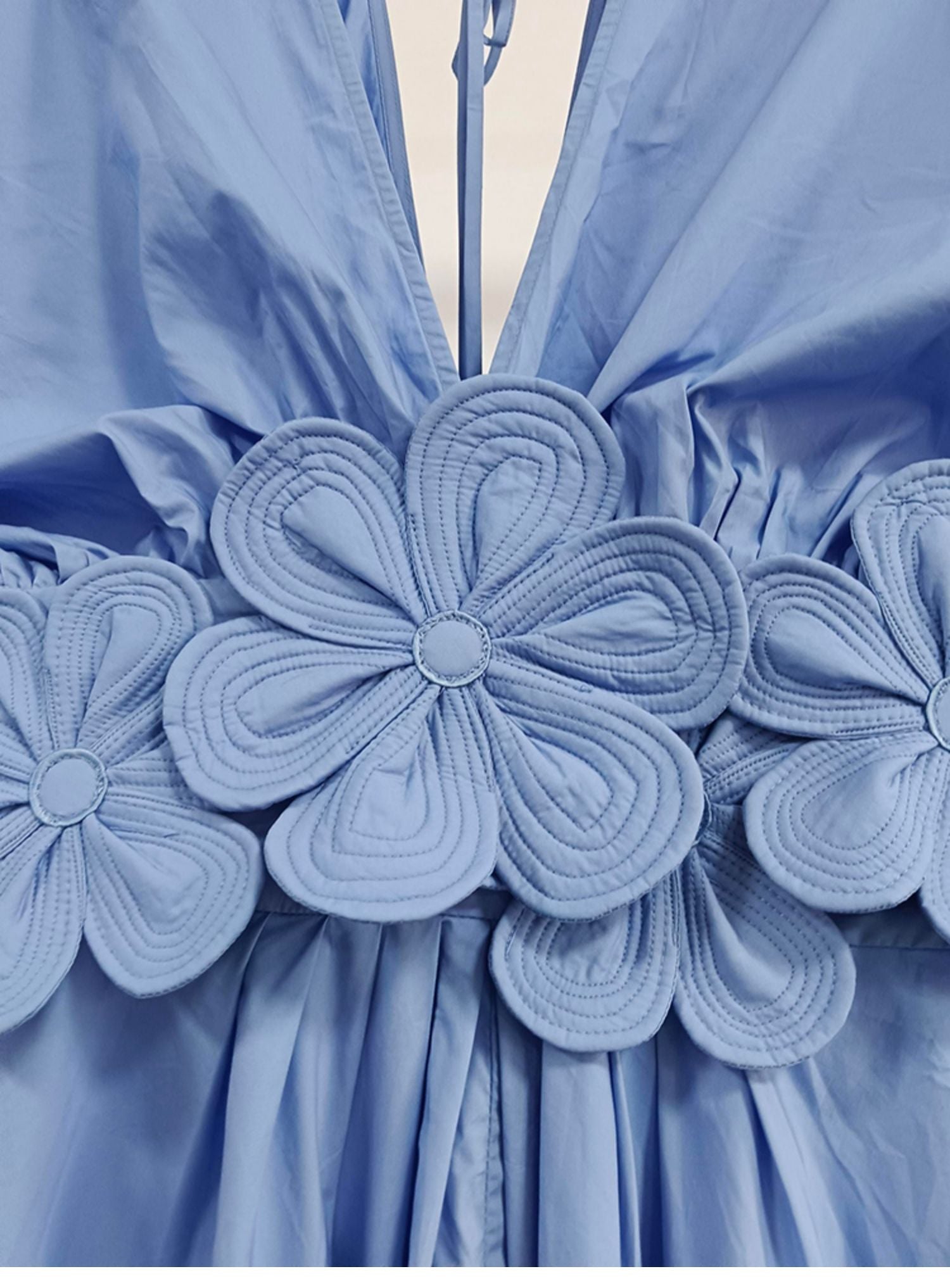 ●Design Feature:Deep V Neck Batwing Sleeves Flower Midi Dress
