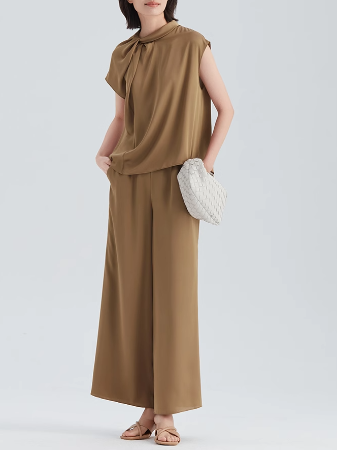 ●Design Feature: Elegant Women Shirt Superior Quality Coffee Pants Set