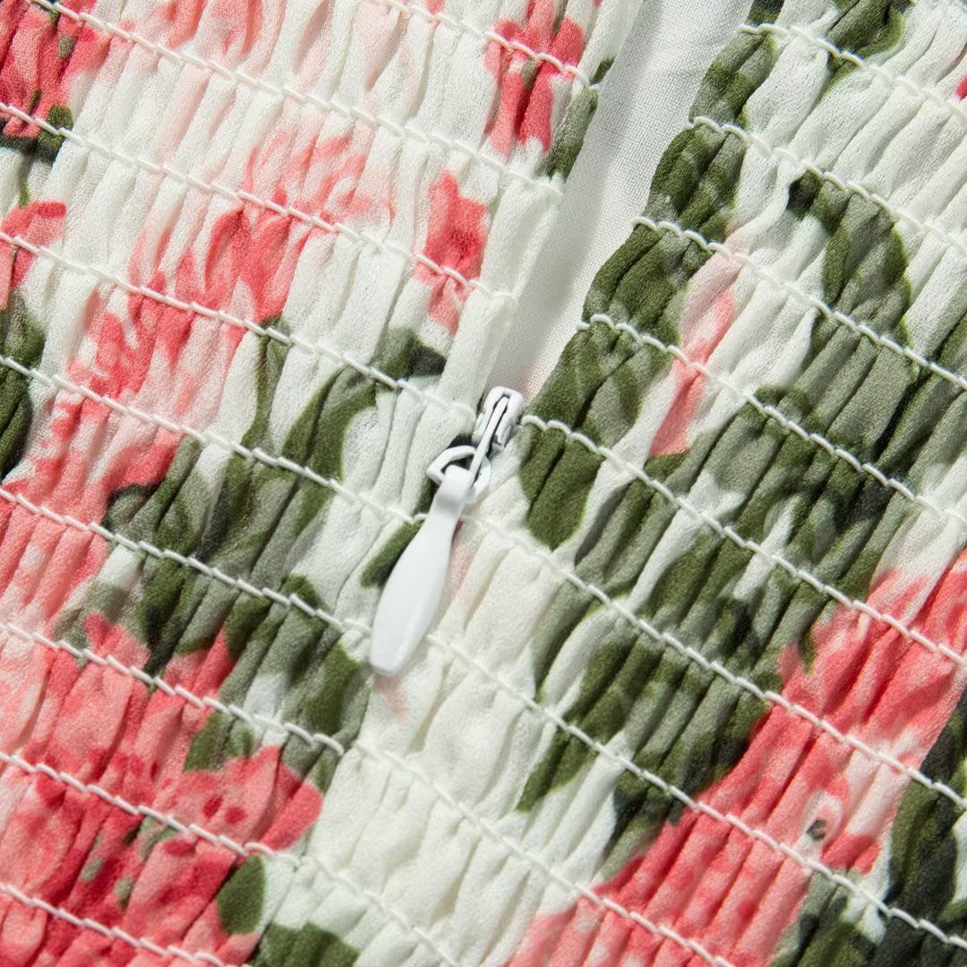 ●Design Feature: Garden Floral Print Off Shoulder Midi Dress