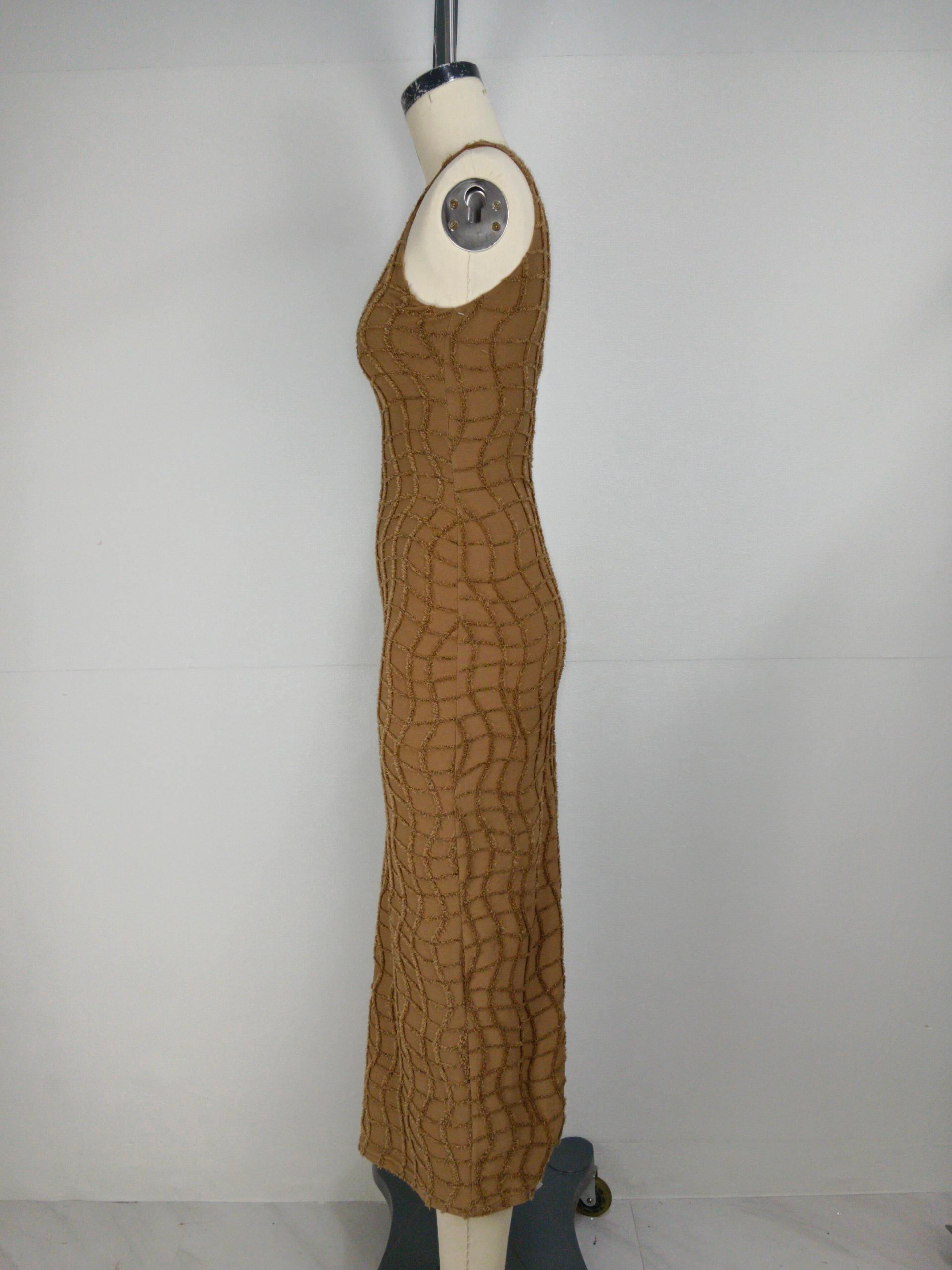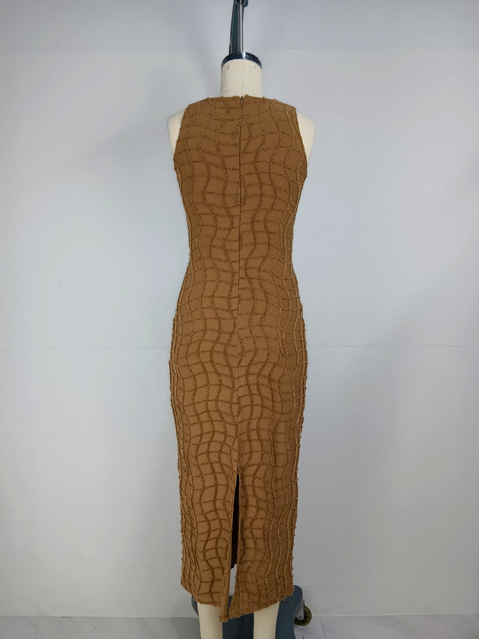 New round neck shoulder cutting slim fit with slimming temperament and waist cinching dress