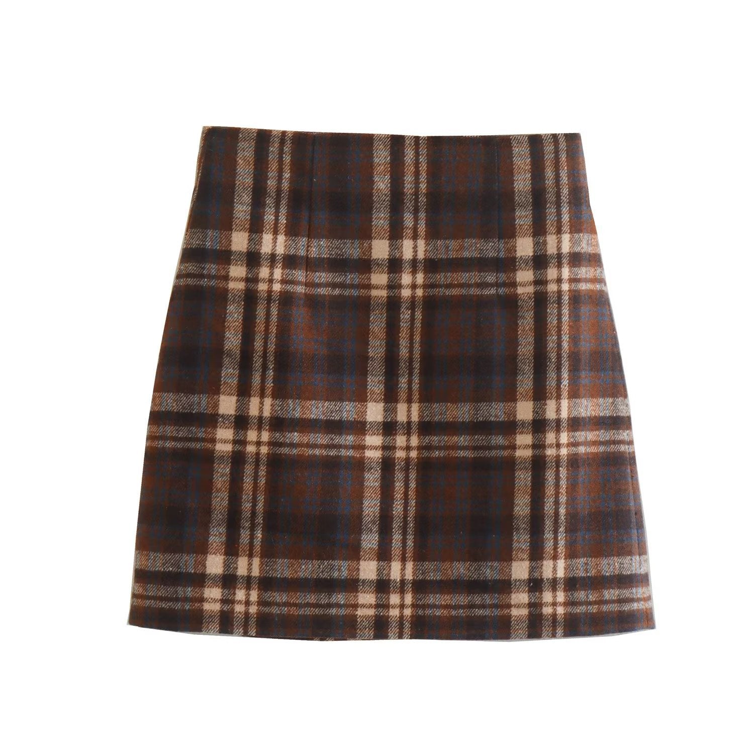 ●Design Feature:Retro Plaid Silhoutte Mini Skirt
