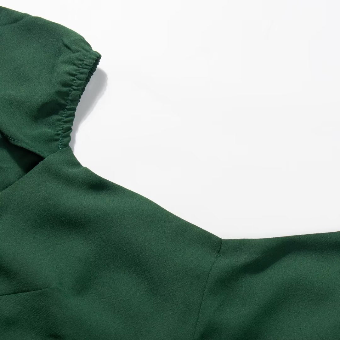 ●Design Feature:Green V-neck Criss Sweetheart Midi Dress With Slit