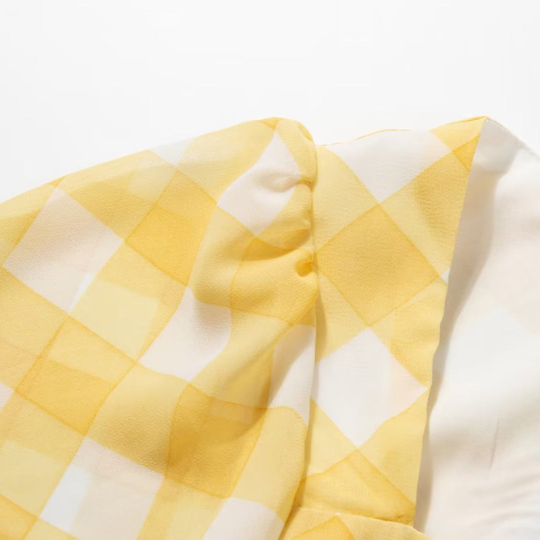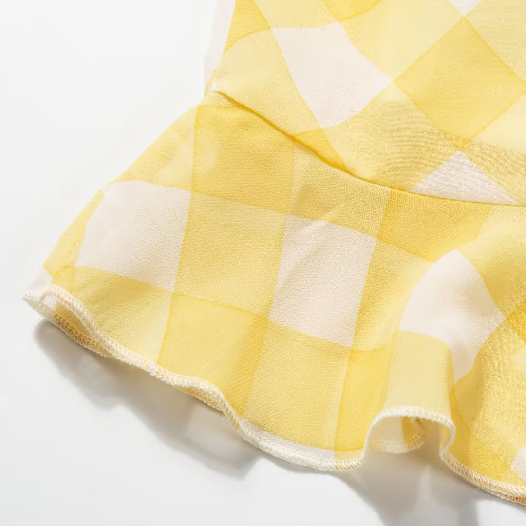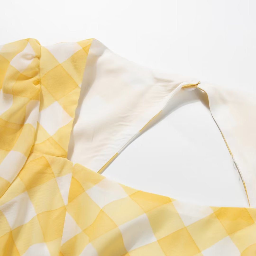 ●Design Feature:Check Print Casual Dress Sweetheart Neckline Midi With Front Slit